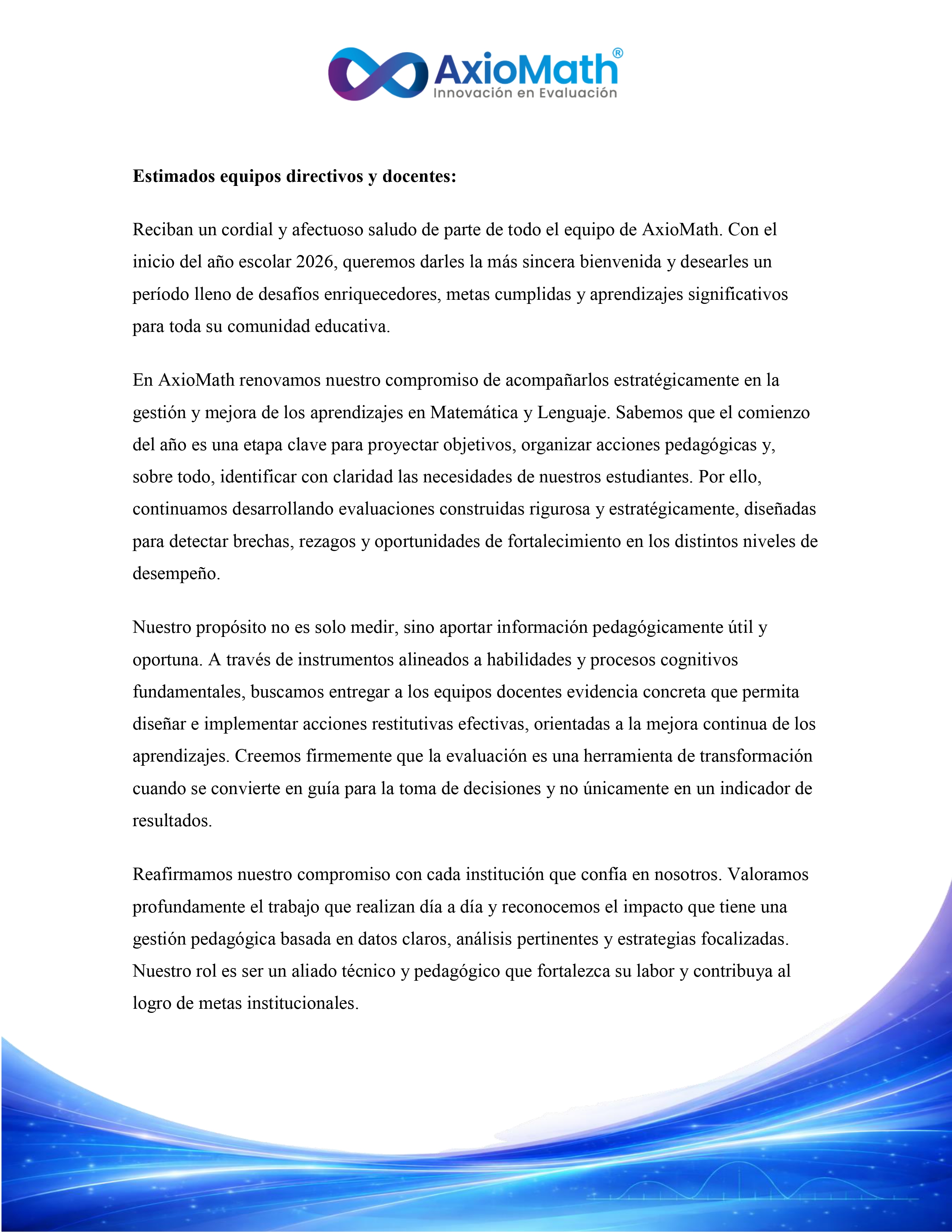 Comunicamos a ustedes que el inicio de clases en todos los niveles será a contar del jueves 27 de febrero.